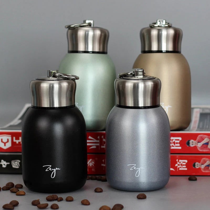 • ❤❤ PERFECT SIZE - Size: 300ml, the exquisite stainless steel water bottle is very portable and easy to carry. Can be carried with different chains. The mini size fits easily in a handbag, backpack or suitcase. Suitable for milk, water, coffee, tea, beverages, wine and beer.