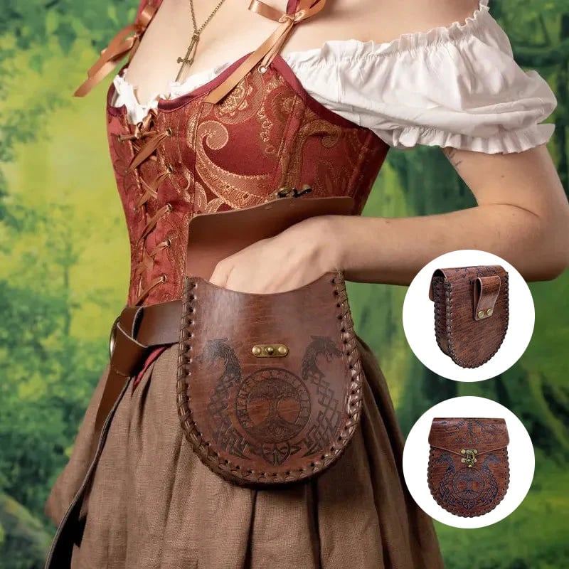 - 1 × Vintage Medieval Nordic Embossed Leather Belt Bag