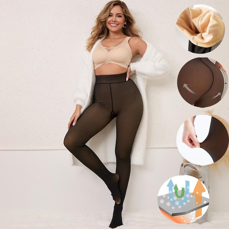 Fake Translucent leggings with fleece lining inside look like sheer stocking tights, that can easily be paired with various styles, including skirts, shorts, sweaters, boots, high heels, and more. You can effortlessly achieve both fashionable and casual looks during autumn and winter, making them suitable for a range of occasions such as leisure activities, dating, and even business settings.